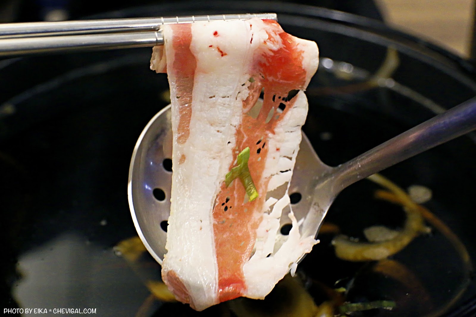 豬五花的油花分布很漂亮,可以看到肉片的切片是有厚度的,更能襯托出肉質的絕佳彈性。