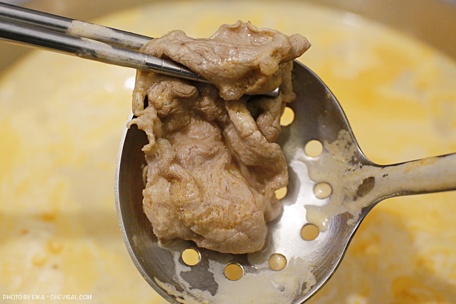 輕輕涮過濃郁湯頭,可以吃到淡淡的牛肉香氣,同時也吸飽了湯頭的精華,不管是搭配叻沙鍋或壽喜鍋都還蠻合適的!