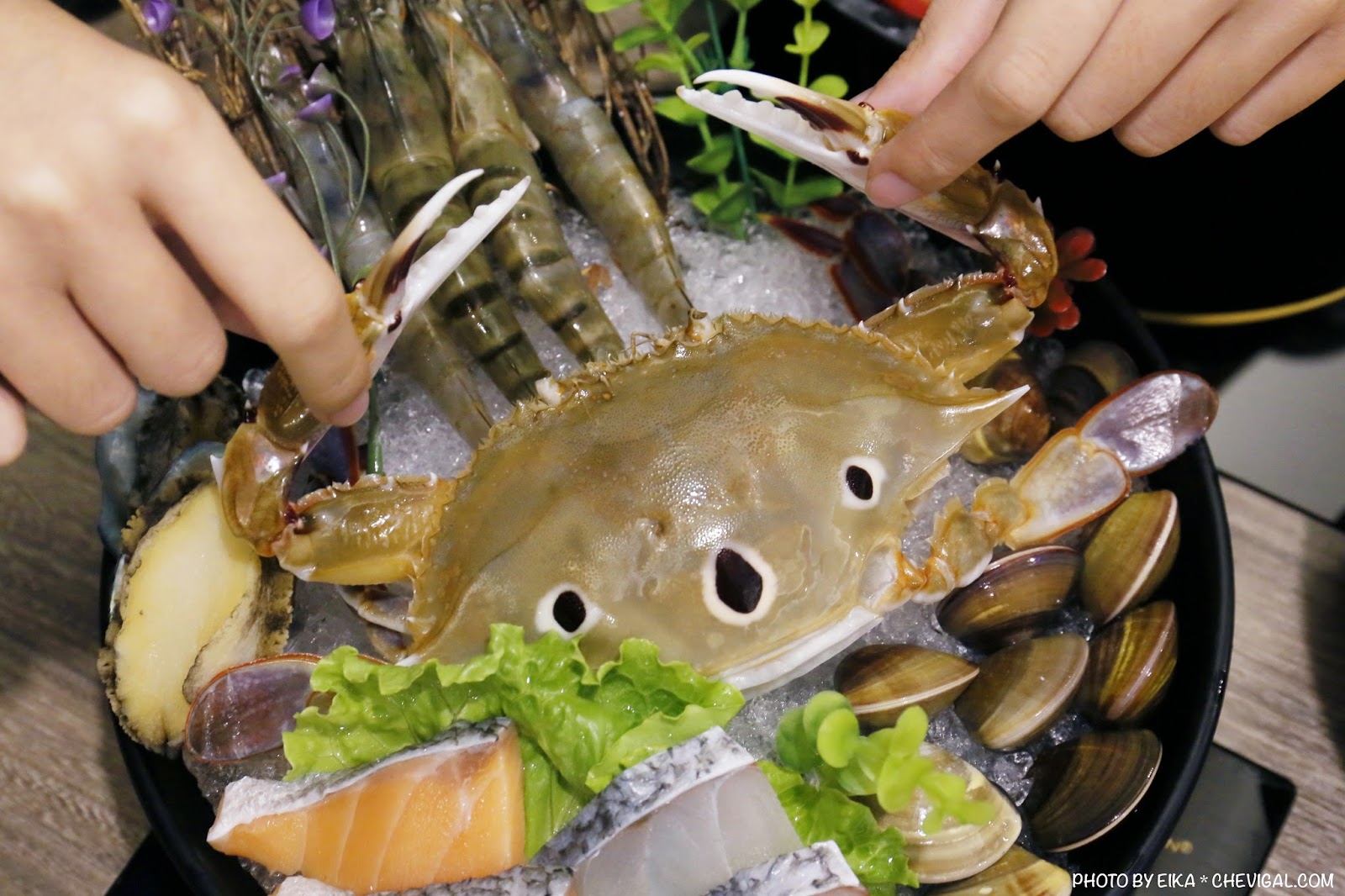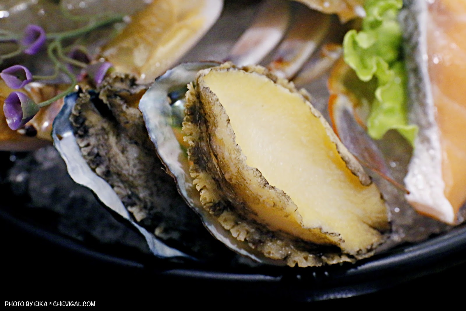 海鮮盤的種類還蠻澎派的!有著野生三點蟹、草蝦、南美白蝦、挪威鮭魚片、台灣鱸魚片、九孔鮑與生鮮蛤蜊。