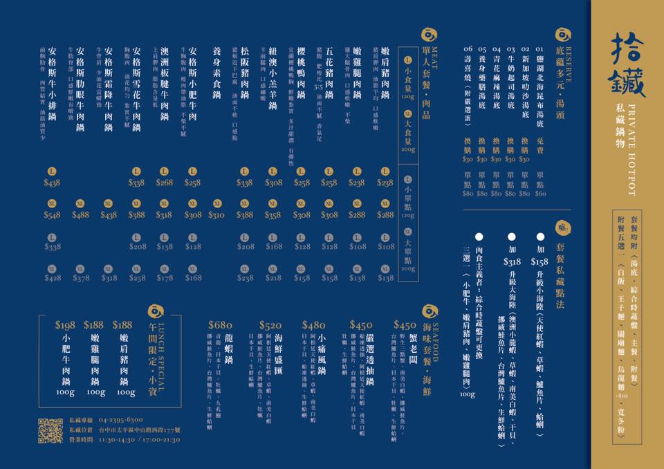 就算痛風也要吃!是什麼美食讓海鮮控與肉肉控都失控?位在台中太平的拾鑶 私藏鍋物,除了有著隱藏版超狂蝦盤與肉盤的「老闆不在家」套餐,現在還有商業午餐只要188元起就能吃得到!搭配上全新深藍文青質感的用餐空間,原來吃鍋也能這麼有氣氛!
