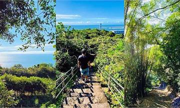 一般人從中間第二個入口登山步道:從南寮福德宮/冷礦泉泳池起:登山約半小時即可攻頂。