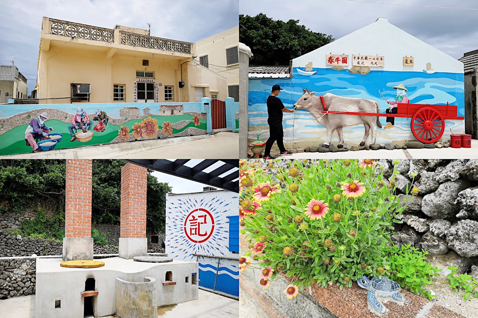 結束了海上行程,我們來探訪位於湖西鄉的南寮彩繪村,早期被稱作龜壁社區。這裡除了看得到傳統的聚落樣貌,村內多處可見色彩鮮明的人文彩繪與海龜相關的裝置藝術。整個村子不會很大,大概慢慢散步半個小時就能輕鬆逛完。