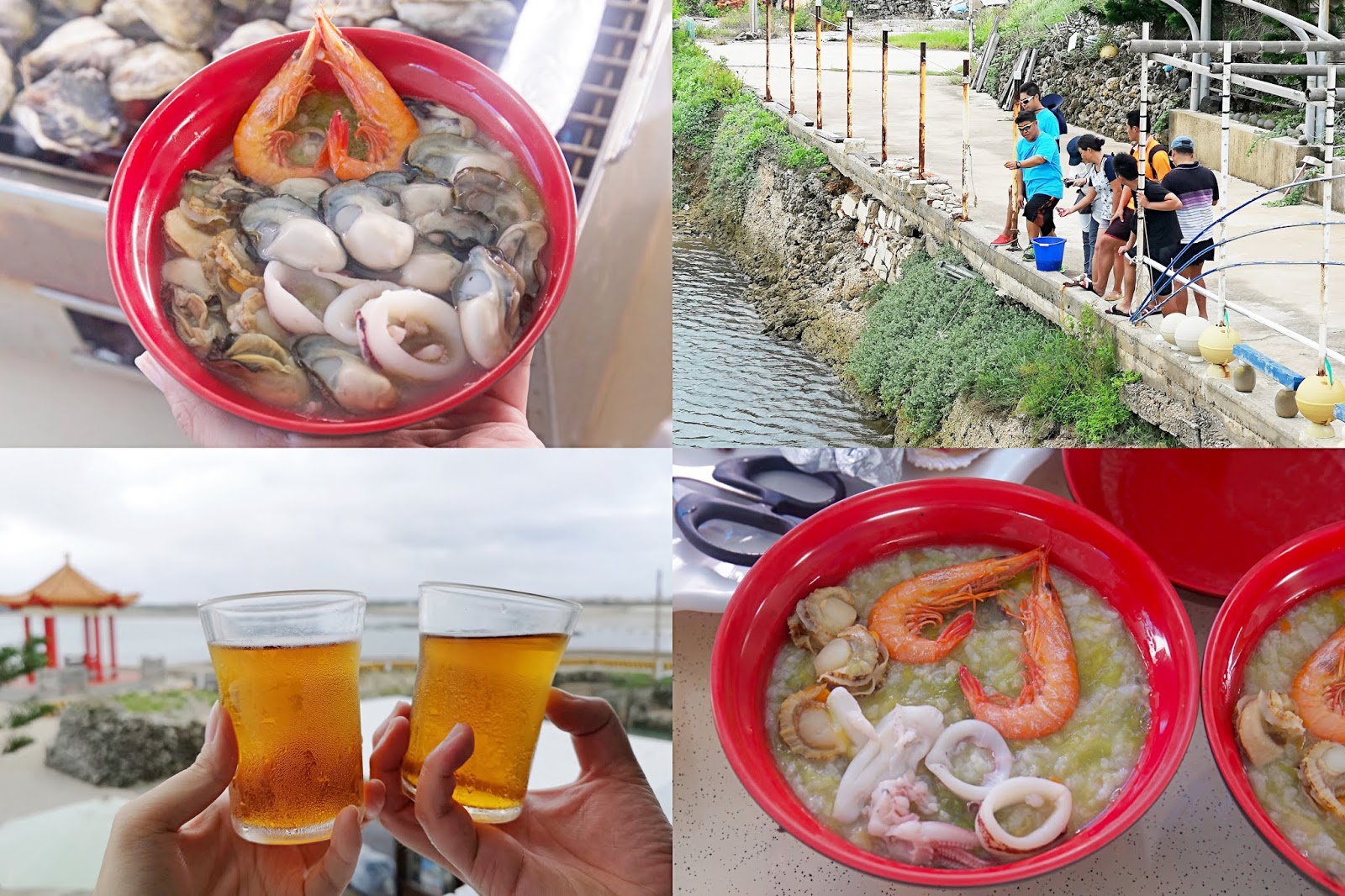 每人都還會有一大碗超澎派的澎湖翡翠海鮮粥,盡情地舖上滿滿的鮮蚵幫自己加料就對啦!覺得口渴還有澎湖道地的清涼風茹茶可以無限量暢飲~石斑魚池餵魚秀也是許多親子喜歡體驗的活動,一旁還有專人教學協助。在東海就能享受寓教於樂與海鮮的鮮美,是趟愜意又滿足的半日遊之旅!