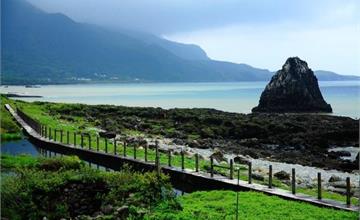 所以拍照起來沒有藍天當背景,整個海面看起來沒有亮麗動人;一望無際的海岸線,軍艦岩聳立,不過,現場映入眼簾的景色依舊是很美的!站在礁岩上非常清楚看到「軍艦岩」感覺隨手一摸就能碰到啦(哈哈)~聽說以前日軍攻打蘭嶼,以為礁岩像是軍艦的轟炸所以才取名,像是守護蘭嶼的軍艦岩。