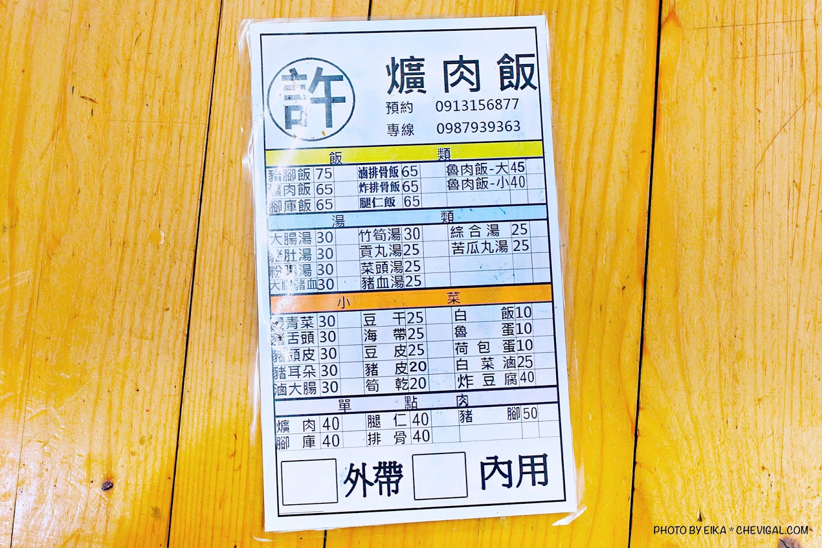 這間沙鹿許爌肉飯就位在光大路上,由於道路兩旁都是店家,附近並不是那麼好停車,騎機車可能會比較方便。營業時間則是從下午四點半至凌晨一點,從晚餐到宵夜時段都吃得到,不要中午跑來撲空囉!