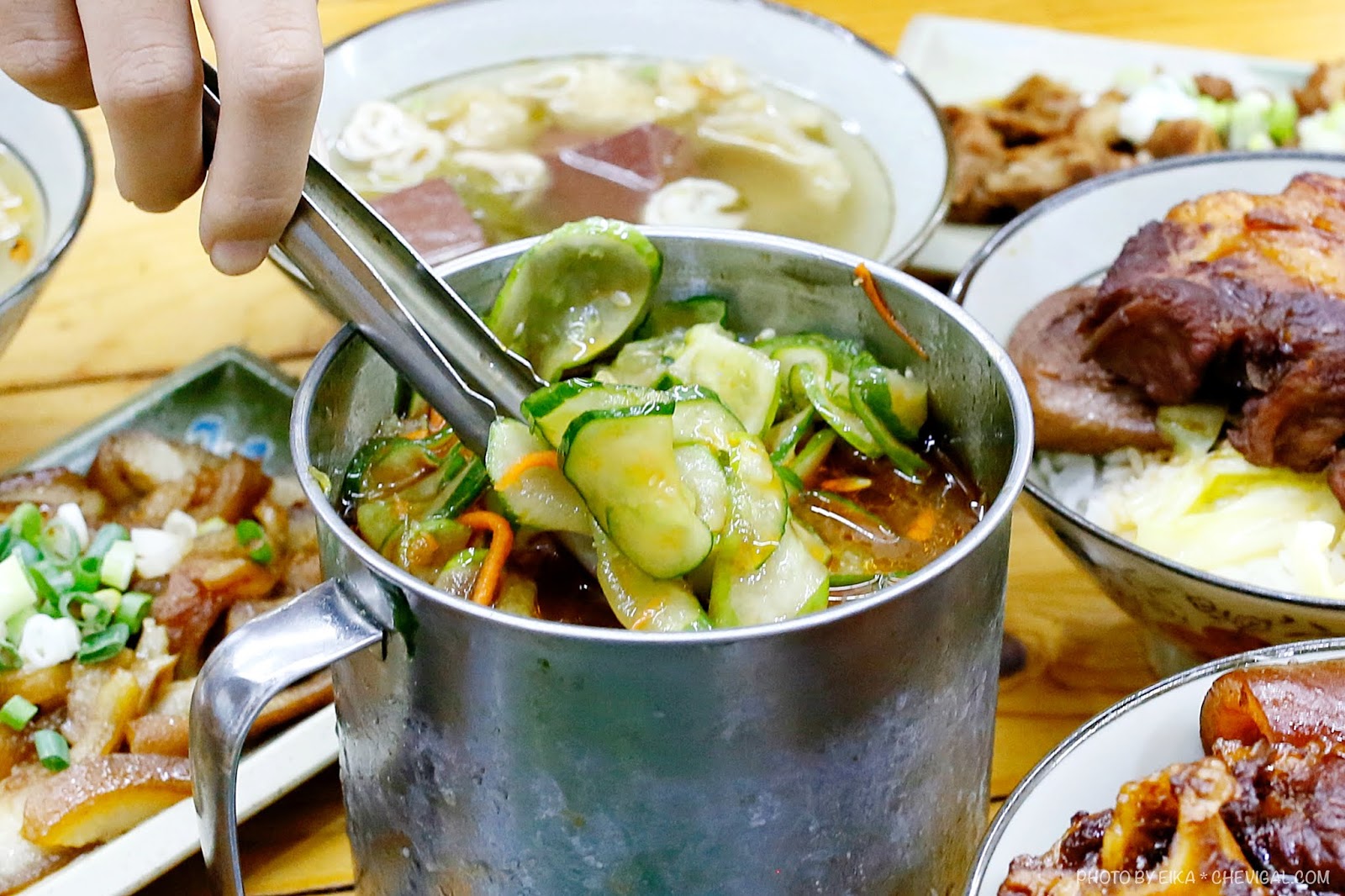 除了酸菜之外,涼拌的小黃瓜同樣也是店家自製,清甜脆口且帶點微辣,開胃解膩還能免費酌量添加,難怪不少客人來到店內必加。