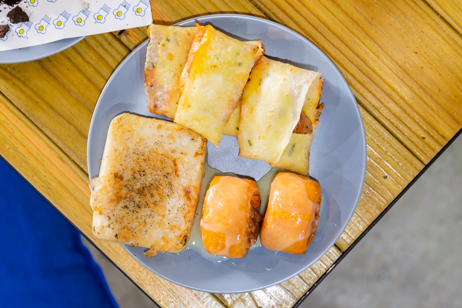 套餐原本附的是原味蛋餅,我們補差價換成了泡菜肉排口味;泡菜吃來酸辣夠味,偏向韓式泡菜的風味,搭配紮實的肉排還蠻過癮的。