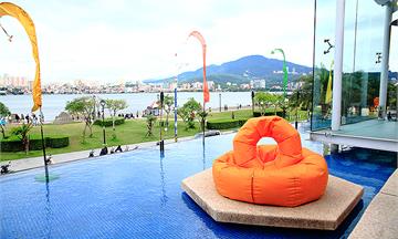 面對景觀的戶外露天吧台式座位,有四人座位,以及也有多人沙發座,兩邊景觀就不同,一邊以板橋市區景觀為主,一邊可以遠眺七星山景色,依照自己喜好挑選不同的景觀座位吧,別有洞天的用餐好地方。
