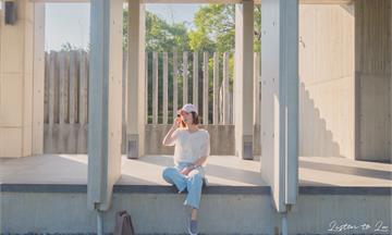 LAG了好一陣子,我們也來之前被朋友的IG洗一波的大溪【法鼓山-古齋明寺】,在外頭的停車場把車停妥,丹尼跟我便從這個被最多人取景的清水模廊道走進寺院,正午過後的陽光有點炙熱,但在走廊上不時有微風拂來好舒服。