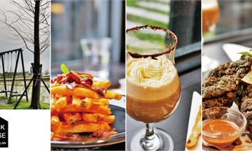 看了黑宅咖啡的菜單,價位上算是中偏高一點,不過輔以這樣的用餐環境、空間設計以及視野風景我想也還是可接受的範圍,在猶豫了要點什麼之後,最後決定點一份培根惡魔花生淋醬薯條(NT.200)和一份黑宅秘製黑炸雞(NT.300)。另外我覺得最加分的地方就是它們有賣我最愛的貝里斯奶酒拿鐵了~(立刻先多給一顆星)