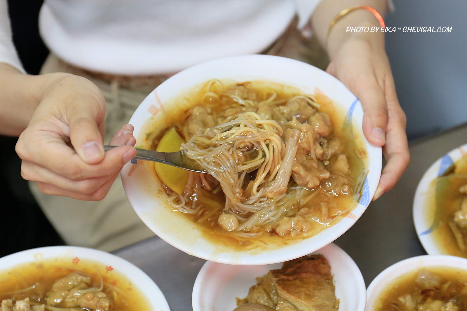 五香醋的酸香搭配上傳統的醃蘿蔔,讓人忍不住分泌口水;肉羹的份量不少,口感也有Q勁,不過裡面的香菇不多,我們覺得比較可惜一些。