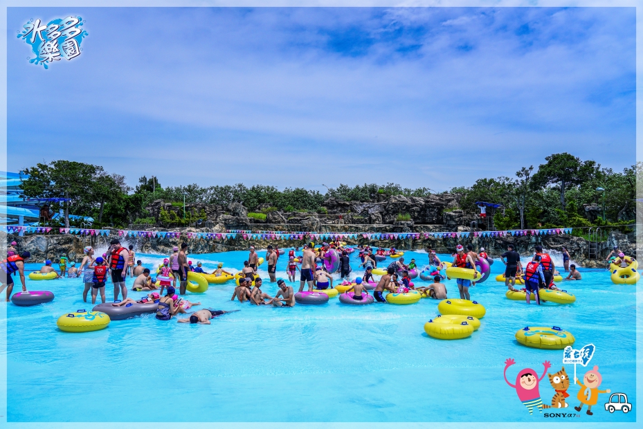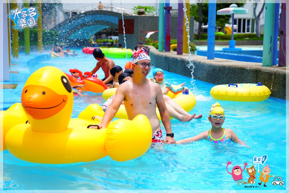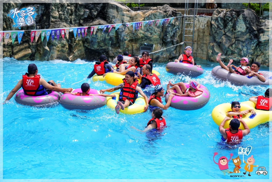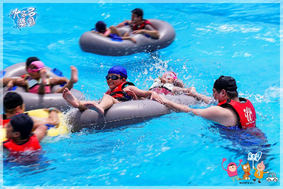 漂流河是小白也是大小朋友們都喜歡的戲水設施,躺在泳圈上,可以想像穿越各式水幕瀑布,完成一場水上漂流探險,也可以悠閒地沿著蜿蜒的河道緩緩地流動,享受兩人甜蜜時光、也可三五成群環環相連,慵懶享受「慢活輕旅」漂流。今天「水多多」水很藍,閉上眼睛靜靜聽著夏風的聲音,咦?漂了第幾圈了呀?呵~不好意思!心情太放鬆,小白和呷噗呷噗、豬大頭、小咪及小淘企在泳圈上睡著了。