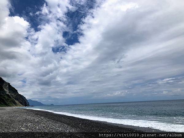 一走出涵洞,就看到這片美麗的海洋,雖然因為天氣不太好,但聽著海浪拍打著礫石沙灘的聲音依舊很好聽