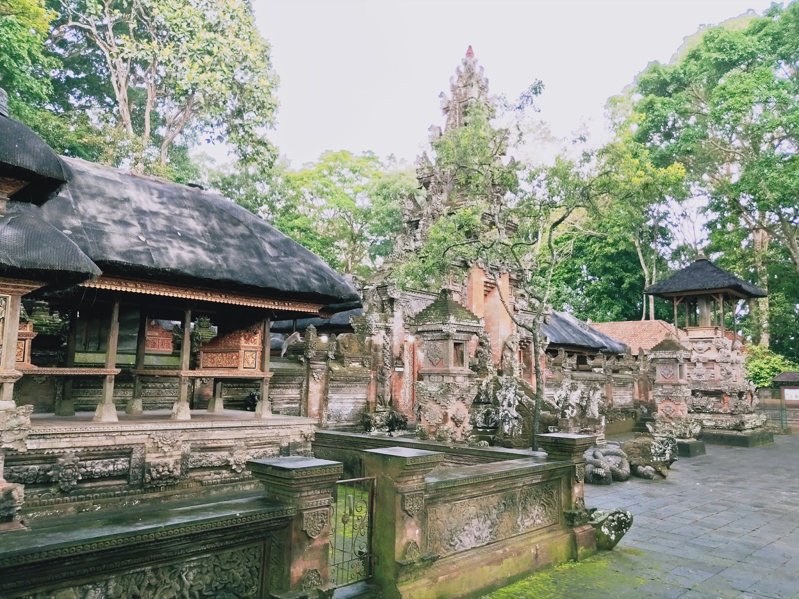 整個聖猴森林可以分成四大景區,一區是飼育區,在這裡你可以看到公園裡有著照育及治療猴子的中心,也是園區唯一能夠買紀念品的地方;接下來可以說是園區最神聖的區域,印度教廟宇位在其中,猴群和寺廟相安共存,猴子因為這座寺廟而免於被捕殺,也因為這寺廟的供品而能存活。滿佈青苔的神廟有著豐富且有趣的石雕,慢慢地品味,你會發現其中藝術家的巧思和幽默。雖然神廟不能進入,但環廟而行,你會看到猴子的各式舉動,不乏趣味。