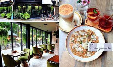 穿越永康商圈幽靜巷弄,這裡少了喧囂,多了種金華街上的小巴黎,台北大安區美食、東門站打卡必去,萍子推薦Les Piccola,整大面落地窗,以經典黑詮釋簡約的小歐法餐廳,大面落地窗,營造綠色植栽森林系,都市中難得的綠意餐廳,主打異國料理、甜點、咖啡,必吃奶油蜂蜜香蕉起司煎餅、燉飯等。