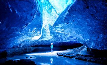 藍冰洞探險是北歐五國中,冰島獨有的冰上活動。進入冰川內部,親眼見證洞頂如波浪般的藍水晶凍,隨著洞外的陽光,呈現出晶瑩剔透、純粹無垢的天然奇景。這是大自然的鬼斧神工,也是在極光之外最讓人心醉神迷的奇蹟之美。