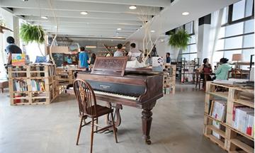 池上穀倉藝術館坐落鐵道邊能看著車來車往,這裡是將以前的老穀倉所改建而成的