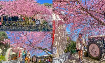 阿璇在上山的彎道已經拍得瘋狂,附近已有不少盛開的櫻花樹,一旁民宿庭院內也有櫻花樹,住在這裡也太幸福了吧~