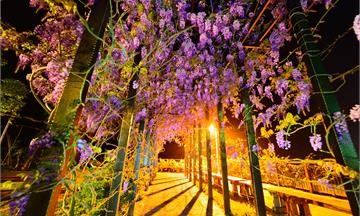 春天,繼阿里山的櫻花盛大綻放後,在山的另一側,則開滿了如夢似幻的紫藤花。