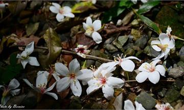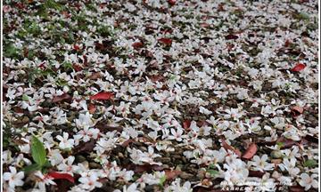 在停車場就看到油桐花掉落一整地超美的!小心翼翼地蹲在地上拍照,真的很怕把滿地的落花給踩壞!