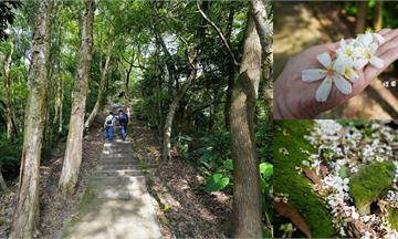 提醒朋友:掉在地面上的油桐花會濕濕滑滑,要小心行走唷!