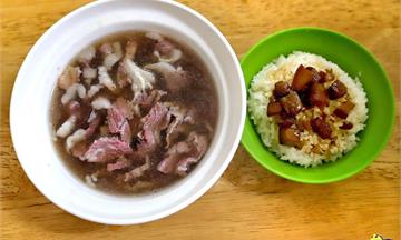 Kiwi點的是沙茶麵,加了沙茶更是一絕。拿起筷子攪拌後,底層的滷汁也會一起拌勻,我很喜歡沙茶的綿密香,複合式的調味,結合麵條,會讓人一口接著一口欲罷不能吃下去。