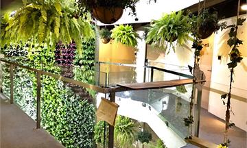 搭乘著電梯,我們來到二樓的酒吧,我自己很喜歡二樓的這個空間,從不一樣的視野看這面千歲牆,那種呈現出來的美感又不一樣,二樓這個酒吧空間也設計的超美,復古中又帶有一點點美式,光是這樣看就超喜歡這樣的氛圍。