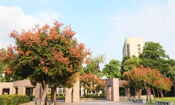 台灣欒樹在圖書館周邊環繞,有著滿滿粉色果實,相當壯觀,遠遠看也有點類似櫻花的感覺,讓人可以拍攝偽出國美照