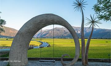 「隧道」其實是跨越卑南溪「中華大橋」的涵洞,花架上有花開,一路走過充滿光影之美