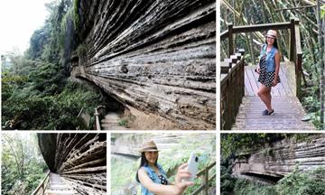 前段步道平坦好走,沿路有舊鐵道相伴,人造杉林隨便抓一個角度拍都十分優美,陽光照射穿透樹林之間灑落在植披上更是美到不像話