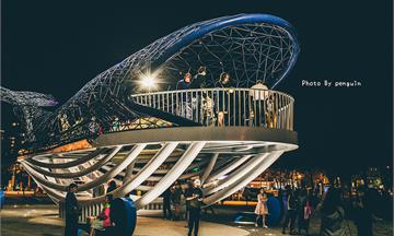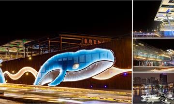 安平的夜晚總是寧靜,夜色下的碼頭步道特別適合散步談戀愛,走在停泊著一艘艘船隻的棧道旁,海風徐徐吹來,伴隨著輕輕的浪花聲,這一刻的安平好美好浪漫!台南新景點安平鯨魚廣場「大魚星光牆」,兩隻大鯨魚點亮了安平遊憩碼頭沿岸步道,一旁的金城里活動中心的燈光與對岸的安平漁人碼頭互相輝映著,讓安平港的夜晚閃閃動人。