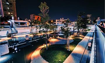 大魚星光牆是安平運河最新的景觀藝術作品,美麗的鯨魚廣場點亮了安平運河金色流域海口端,與金城里活動中心一起營造出浪漫的港口夜景,與對岸的安平漁人碼頭、大魚的祝福互相輝映,沿著碼頭步道漫步而行,可以一路走到活動中心樓上,從高處欣賞安平港的美麗夜景。