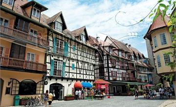 而在太陽公園的不遠處有這樣一個漂亮的木屋、小溪還有花園,雖然木屋裡面空無一物但搭配著彩色玻璃窗,藍天白雲加上外面的大草皮,孩子又是一陣開心亂跑,大人則好好地吸收這無與倫比的新鮮空氣即可。