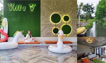 和一群好朋友去外地玩耍大家會選擇住在哪裡呢?小吠現在比較屬意可以包棟的民宿,畢竟隱私性和空間運用的靈活度都會比飯店更高一些!五月初時趁工作空檔揪了Aniko和其他女性朋友一起到宜蘭玩耍,這次住在一間設備超棒的包棟民宿▸Villa V宜蘭頂級會館◂,不但有戶外泳池可以戲水而且還有專業烤肉爐可在池畔BBQ,更特別的是民宿後方還有河道可以划獨木舟整個超酷!