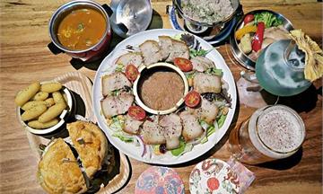 這個沙拉的分量真的不是和我開玩笑的多,生菜上是滿滿的山豬肉,中間醬料是山藥泥和糖醋汁,吃起來很有原住民阿莎力的氣勢