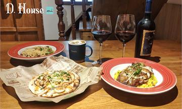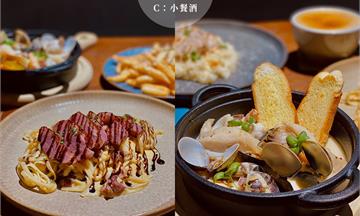 主餐有義大利麵、燉飯、薄餅、帕尼尼可選擇,皆可加價升級套餐,另外可單點炸物點心、甜點、咖啡和各式飲品,還有現點現做的寵物餐。