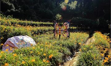 尤其是金針花海旁就有蝴蝶群飛舞,目測大約有50多隻一起在吸花蜜