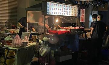 流氓熱炒位在大東路16號前,這裡沒有店面,只有一個攤子。深夜的士林夜市所有店家都關了,只有這裡人最多、最熱鬧。店家的營業時間大部分的部落格文章都是寫凌晨1點開始,但小涵看了google的店家資訊是凌晨12點到4:30,總之我們是1:15左右到,幾乎都沒位子了,生意非常好。