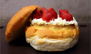 另外,草莓季必吃的還有草莓泡芙,產地直送的新鮮大湖草莓直接加入外酥內軟的手作泡芙中,下午茶時間來一顆幸福指數破表!