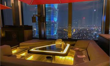 靠近窗戶的時候,瞬間有種腳麻的感覺,這裡真的好高啊!!!等到了更晚時段後,露天用餐區會轉為Sky Bar & Lounge高空酒吧,欣賞著這一大片夜景肯定更過癮啦。