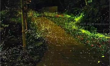 這幾年園區因為復育有成,有乾淨水源、低污染、無光害,還有螢火蟲最愛的美食之一甲蛞蝓,才能造就如花毯般的螢火蟲數量。