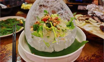 這道「蕉蕉者」曾參加全國料理比賽得過獎!一口咬下發現是香蕉酥,特別的料理手法,不用一般粿粉炸,改用春捲皮包裹香蕉炸, 外酥內軟且不油膩的口感,終於懂為何這道菜可以是佼佼者啦!