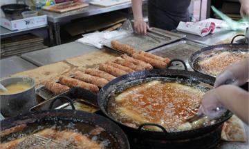 當天去的時候蝦餅剛好沒有,殘念~不過沒關係,因為有吃到朋友大推的芋頭粿,外皮是用春捲皮下去包覆,薄薄的一層,經由炸過之後,很像樂事薄片餅乾的口感,咔滋咔滋的,搭配裡頭滿滿的芋頭以及肉餡,芋頭的香氣搭配肉的甜味,很有層次感,喜歡~