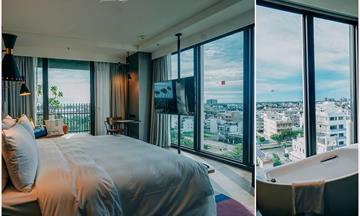 2022年全新開幕旅店-森行旅,鄰近安平老街、漁光島,豪宅霸氣外觀,每個陽台設計各國問候語,讓各國遊客有個第一好印象。大廳和房間的設計是較為鮮豔新潮風格,滿適合拍照,房間格局較為小而巧,但都有對外採光,可賞河濱美景。