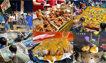 夜市裡攤位很多,常見的夜市美食小吃排骨酥、米血糕、章魚燒、雞蛋糕、雞肉串、甘草芭樂、燒酒螺、熱狗、地瓜球、炸脆薯等通通有!來到夜市真的會眼花撩亂,太多都想吃了,一定要空著肚子來!