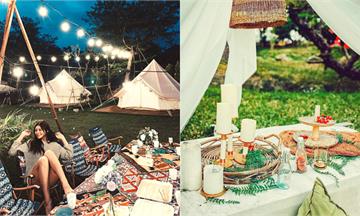 水管屋對面就是游牧露營車,整台車身是波希米亞風格,搭配綠油油的草地與日月潭湖畔,象徵自由不羈的生活態度,很有濃厚的異國風,晚上點燈之後更有氛圍!