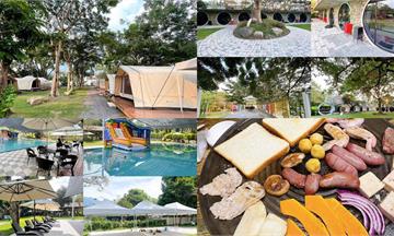 我們的一泊一食方案是晚餐(無早餐),晚餐可以選擇風味餐或BBQ,既然都來到懶人露營區了,我們選的是BBQ烤肉。17:00就可以領取噴槍&炭火!鄰近美食推薦:新山味、碼啡館。