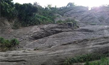 鈺鼎步道步道中段兩顆充滿青苔的大石,兩處大石互相並立,猶如兩隻青色石龍盤踞。