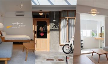 走到民宿的另一館有三間套房。這裡也是早餐的區域,乾乾淨淨的溫暖燈光,很適合與好友一起聊天聚餐的公共空間。