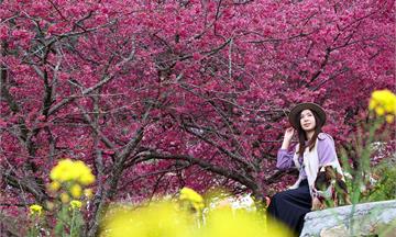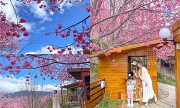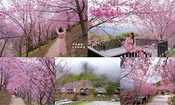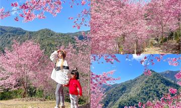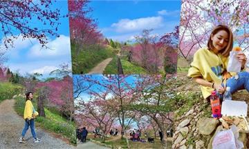 沒有帶野餐墊~沒關係,找幾塊比較平坦的石頭鋪成一片~就成了道道地地的石板餐桌,擺放上原住民美食~邊吃美食邊賞櫻花,絕對是一大享受!放眼望去~皆是滿滿的河津櫻,可以舖上野餐墊~自在躺下享受愜意的浪漫,隨著微風徐徐吹來~櫻花瓣飄落,讓人忍不住尖叫